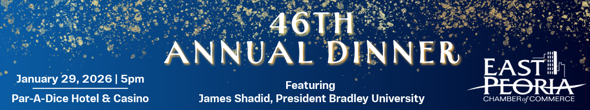 Join the East Peoria Chamber of Commerce for our 46th Annual Dinner on January 29, 2026, as we celebrate the successes of our members and the strength of the East Peoria area community.